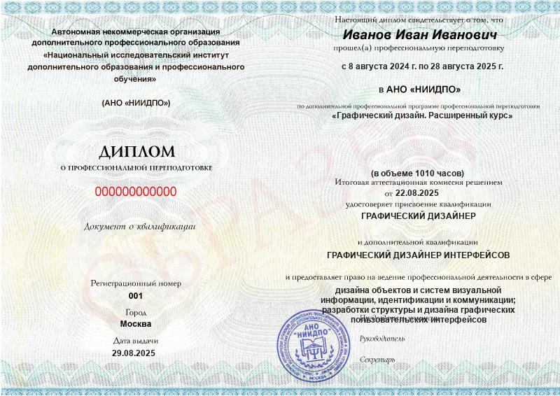 - 2 квалификации: Графический дизайнер + Графический дизайнер интерфейсов