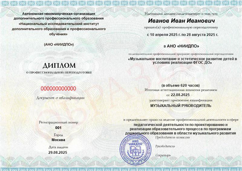 Студент, желающий поступить в АНО «НИИДПО», должен предоставить справку из образовательной организации. Независимо от срока окончания обучения по программе дополнительного образования, диплом о профпереподготовке выдаётся только после предъявления документа о получении среднего профессионального или высшего образования.