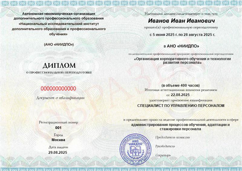 Студент, желающий поступить в АНО «НИИДПО», должен предоставить справку из образовательной организации. Независимо от срока окончания обучения по программе дополнительного образования, диплом о профпереподготовке выдаётся только после предъявления документа о получении среднего профессионального или высшего образования.