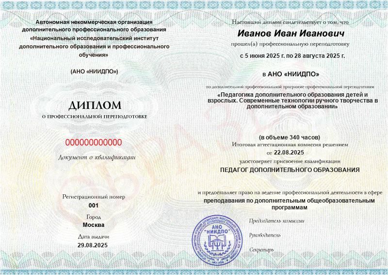 Обзор программы профессиональной переподготовки «Педагогика дополнительного образования детей и взрослых. Современные технологии ручного творчества в дополнительном образовании» с присвоением квалификации «Педагог дополнительного образования»