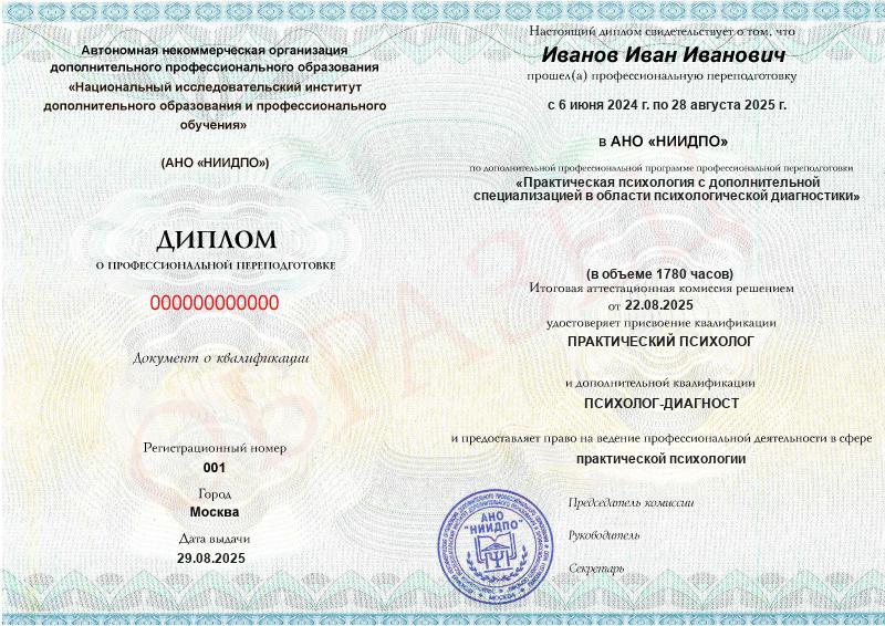 - 2 квалификации: Практический психолог + Психолог-диагност