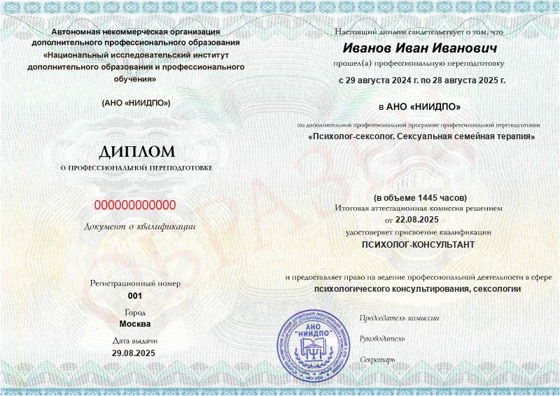 Курс обучения Психолог-сексолог. Сексуальная семейная терапия (1445ч)