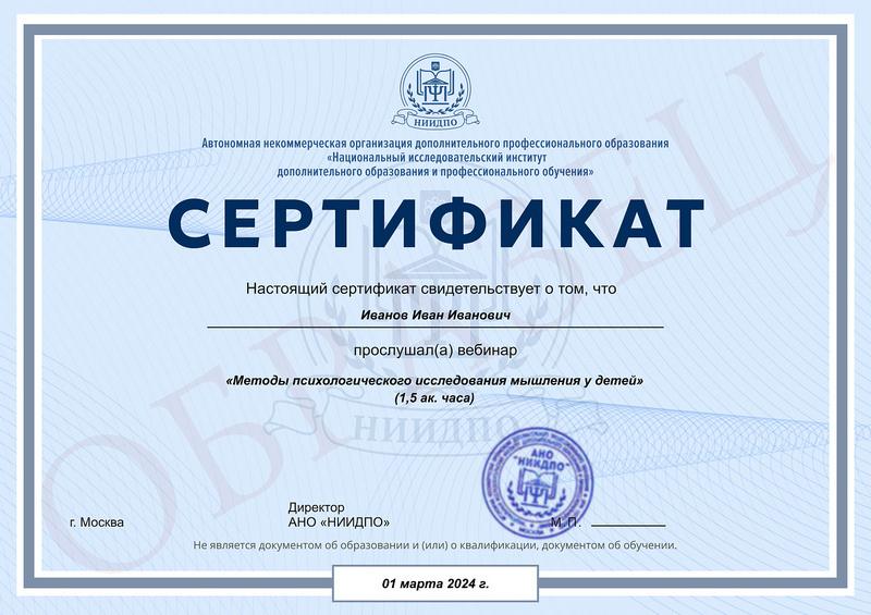 Студент, желающий поступить в АНО «НИИДПО», должен предоставить справку из образовательной организации. Независимо от срока окончания обучения по программе дополнительного образования, диплом о профпереподготовке выдаётся только после предъявления документа о получении среднего профессионального или высшего образования.