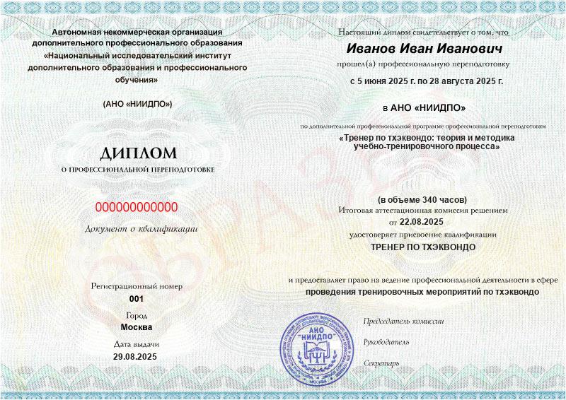 Обзор программы профессиональной переподготовки «Тренер по тхэквондо: теория и методика учебно-тренировочного процесса» с присвоением квалификации «Тренер по тхэквондо»