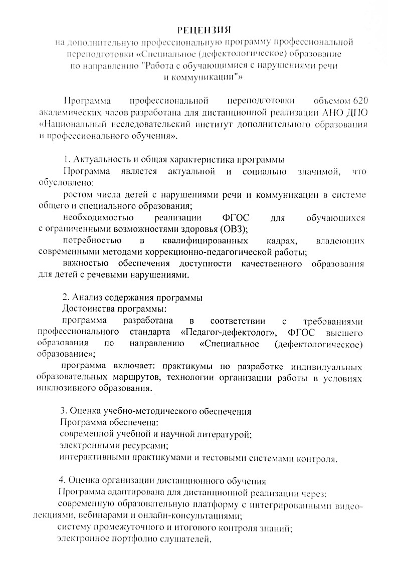 Материал курса информативен, большинство преподавателей давали адекватную оценку практическим работам, были готовы оказать профессиональную помощь. Отдельная благодарность педагогогам, учителям-логопедам Алешиной С.Г., Горбуновой Е.В., Митиной В.С. за эффективную подачу материала, практические примеры логопедических занятий и упражнений, котрые были представлены в видеоматериалах к модулям. Для курса профессиональной переподготовки, который я прошла, цена и качество были оптимальными по рынку образовательных услуг. Дистанционный формат очень удобен для обучения. Благодарю!